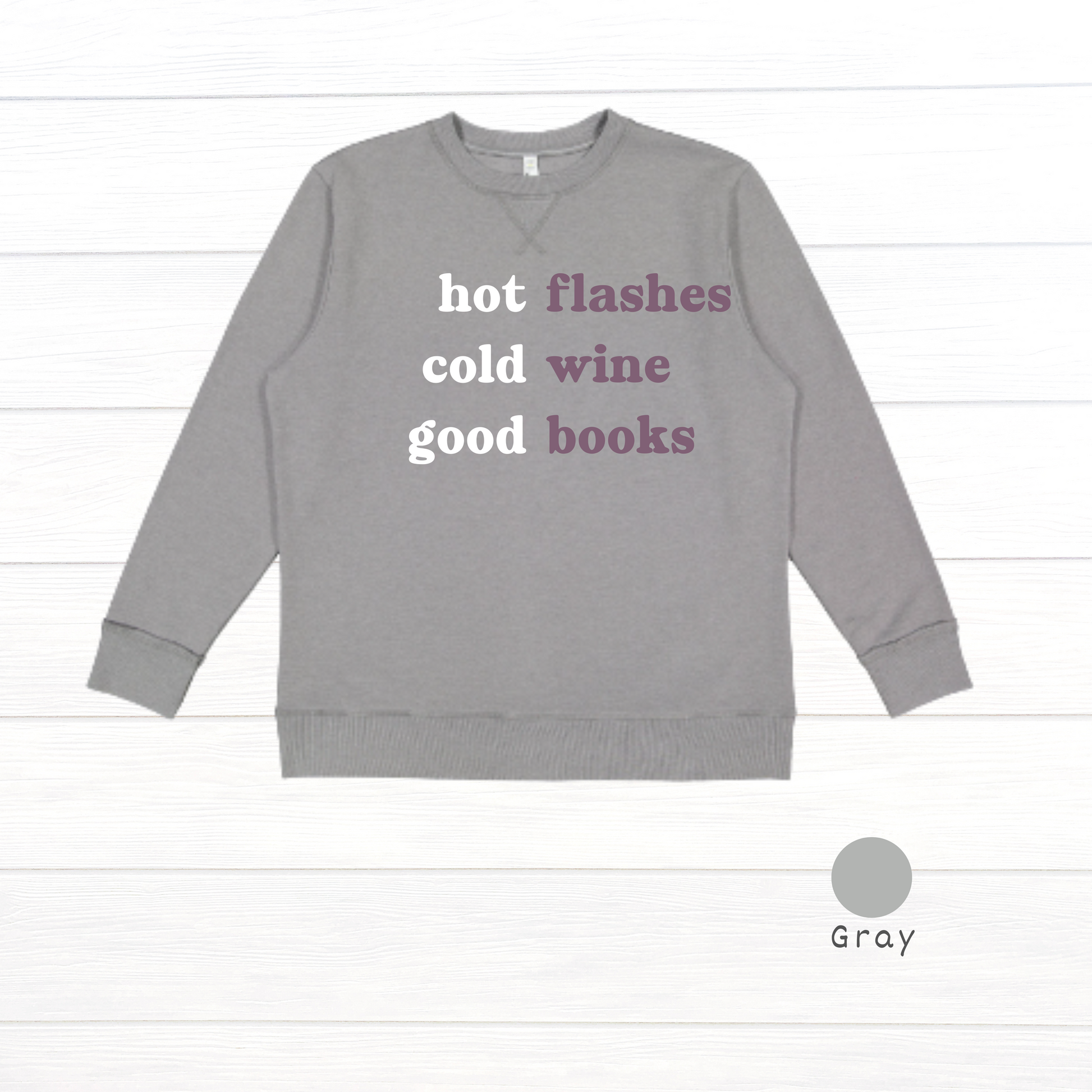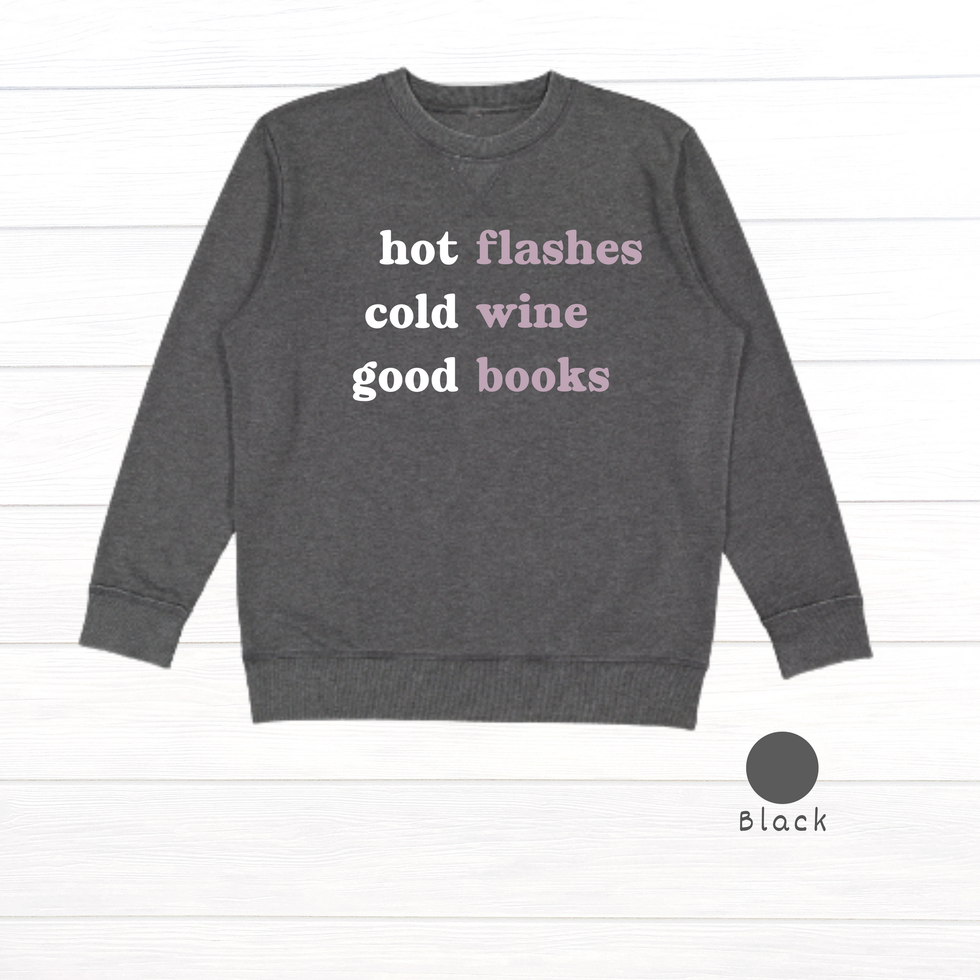 Embrace cozy moments with this vintage wash fleece sweatshirt that perfectly pairs with hot flashes, cold wine, and a good book. Soft, comfy, and effortlessly stylish, it’s your new go-to for relaxed days and laid-back nights. Stay warm, stay playful, and live your best story in comfort.
